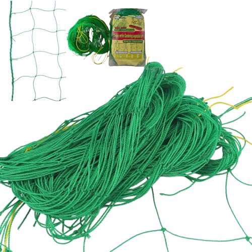SAKURANのつる植物誘引ネットは、縦0.9m・横1.8mで、10cm角目の緑色ネットです。四隅にロープが付いており、きゅうりや朝顔、バラなどのつる植物の支えに最適。ベランダや菜園ガーデンに対応しています。
