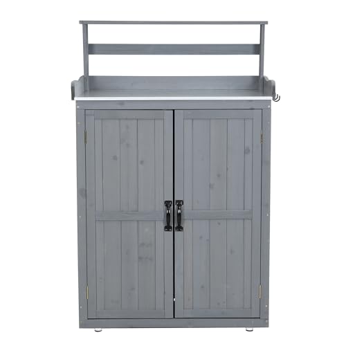 STPZHXCの物置きは木製で、観音扉が特徴。ヨーロッパ風のデザインで、サイズはL42xW74xH120.5cm。庭やベランダに最適な屋外収納庫です。頑丈でガーデニング用品の収納に便利。
