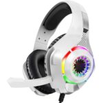 Tomvorks GS410 ゲーミングヘッドセットは、パワフルなサウンドとクリアなコミュニケーションを提供。軽量デザインで快適、鮮やかなLEDライト搭載。ゲーム、ノートPC、デスクトップPCに対応(ホワイト)。