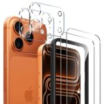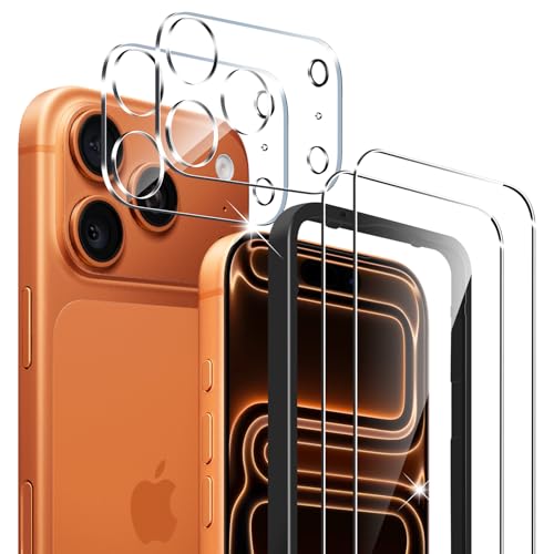 【4枚セット+ガイドフレーム】For iPhone 17 Pro Max ガラスフィルム(2枚)+カメラフィルム(2枚)対応 9H硬度 耐衝撃 飛散防止 3Dラウンドエッジ 強化ガラス 高感度タッチ 高透過率 気泡ゼロ 貼り付け簡単 ガイド枠付き アイフォン 17 Pro Max 用 液晶画面保護フィルム