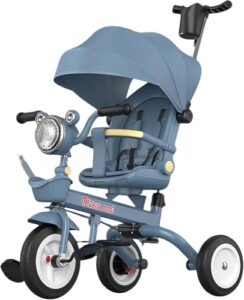 GRSMISの子供用ペダル三輪車は、手押し棒付きで乗用玩具として使え、組み立て簡単・コンパクト収納が特徴。ソリッドラバーチタンタイヤ採用で、安全で快適な乗り心地を提供。誕生日プレゼントに最適な2 in 1モデル(パープル)。
