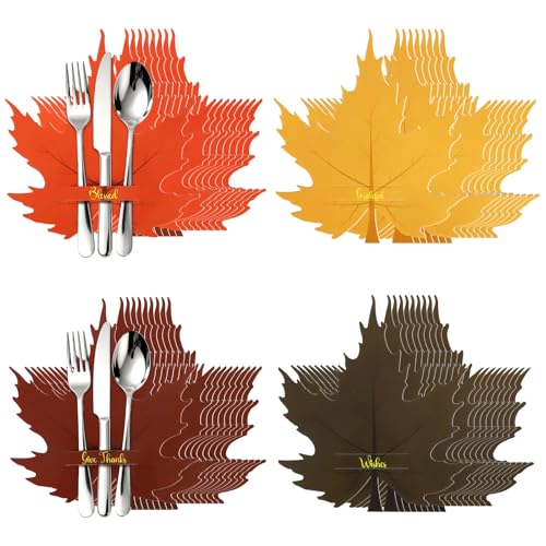 感謝祭のカトラリーホルダー、ディナーテーブルを華やかに飾る36個入りセット。銀食器ホルダー、友人へのパーティーデコレーションにも最適。素材はメープル仕上げ。