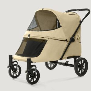 FLYXADQ ペットカート 大型犬対応 犬 バギー 4輪 犬用かーと 乗り降りラクラク スロープ付き 犬 カート 緩衝設計 犬用ベビーカー ワンタッチ折り畳み 後輪ブレーキ付 ペットキャリーカート 組み立て簡単 ドッグカート ペットベビーカー 犬用バギー 大型犬 中型犬多頭 ーカート老犬(カーキ)