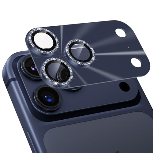 Podick カメラフィルム iPhone 17 Pro 用 カメラカバー キラキラ 9H強化ガラス 全面保護 アイフォン 17 Pro 用 カメラ保護 ピカピカ キズ防止 耐衝撃 高透過率 黒縁取り 露出オーバー防止 いphone17pro レンズカバー プロテクター ディープブルー 高価買取中