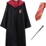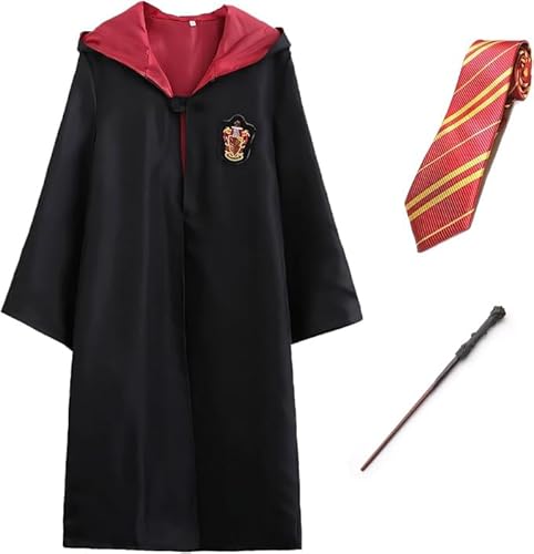 ハリーポッターの子供用コスプレセット。グリフィンドールのローブ、ネクタイ、魔法の杖が含まれる3点フルセット。ハロウィンや仮装に最適です。サイズは155cm用。