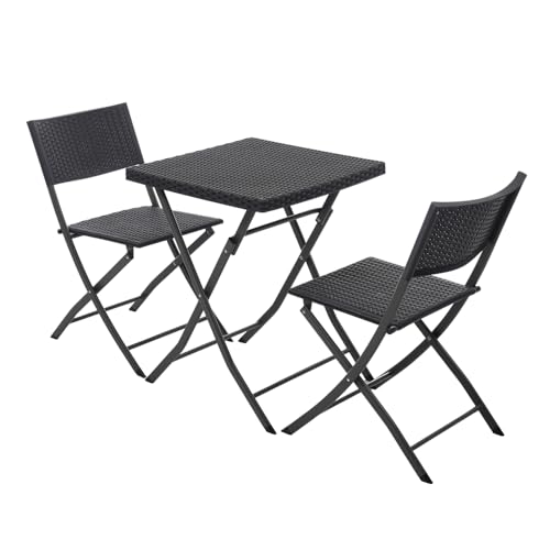 P PURLOVEのガーデンテーブルセットは、ラタン調の折りたたみ式で、3点セットのコンパクトデザイン。バルコニーやアウトドアに最適。省スペースで収納も簡単、ブラックカラーがスタイリッシュ。