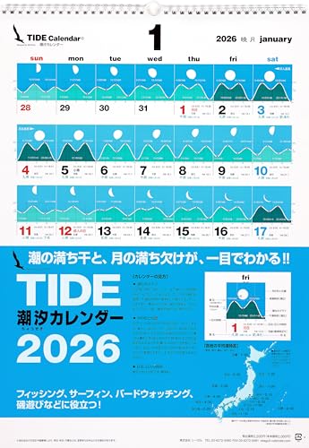 シーガル タイドカレンダー 2026は、潮の満ち引きや月の満ち欠け、月齢を詳細に記載したカレンダーです。海や釣り、自然観察に最適なアイテムです。