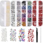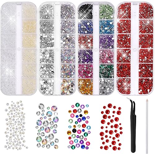 KJOETの5500個のフラットバックラインストーンセット。ホワイト、ベージュ、半円パールやAB透明クリスタル含む。ネイルアートやDIYデコに最適。ピッカーペンとピンセット付き。