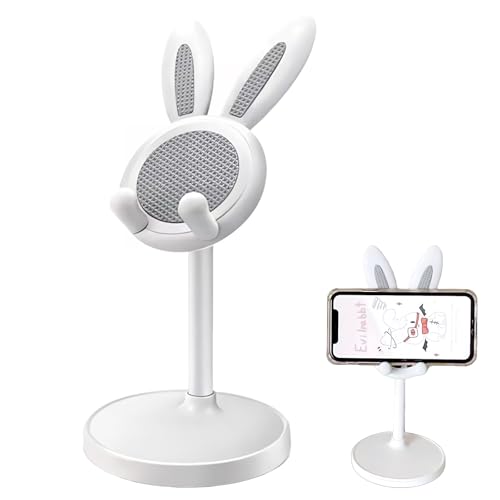 KDSSYFTの携帯電話スタンドは、かわいいうさぎデザインで、角度と高さを調整可能です。スマホやタブレットに対応し、ホワイトカラーが特徴です。