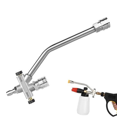 ADOFUN フォームキャノンダブルコネクターは、デュアルコネクターアクセサリーで、高圧洗浄機に接続可能。泡キャノン用の1/4インチアタッチメントで、1本で2役。クイックコネクトスイッチ付きで、洗車や自宅での使用に最適です。