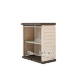 コマントゥ引き戸式の大型物置で、屋外収納に最適です。防水仕様で大容量、ベランダや庭にぴったり。ホワイトカラーが美しく、二重構造の縦開きスライドドアで便利です。