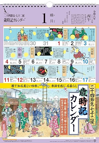 シーガルの「歳時記カレンダー 小 2026」は二十四節気や七十二候、月の満ち欠け、月齢、旧暦を表示。四季の移ろいを感じることができる便利なカレンダーです。日々の生活に彩りを与えるアイテムとしておすすめ。