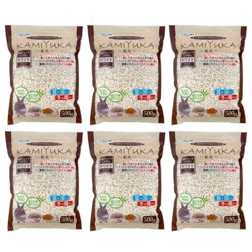 シーズイシハラのクリーンモフ小動物用床材KAMIYUKA(ホワイト)は、500g×6パックで提供されます。紙製の床材で、優れた吸水性と消臭効果があり、安全で快適な環境を提供します。