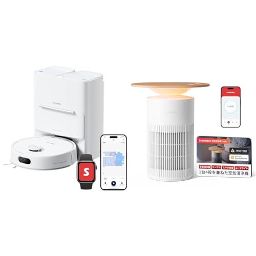 SwitchBotのロボット掃除機S20は、90日間自動ゴミ収集、強力吸引10000Pa、水拭き、AI障害物回避に対応。また、空気清浄機は360度浄化、HEPAフィルター搭載で省エネ設計です。