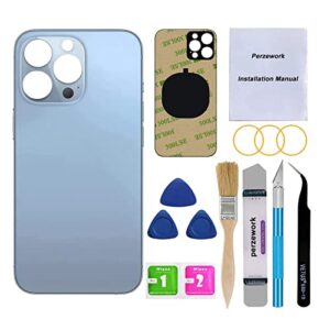 Perzework OEM リアバックガラス 交換用 (シエラブルー) iPhone 13 pro 6.1インチ対応 接着剤と修復ツールキットが取り付けられているすべてのキャリアー