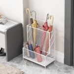 Wenroxの業務用傘立ては、大容量で長傘・折りたたみ傘に対応。スチール製で水受け皿付き。玄関収納に最適で、組立不要。サイズは40×22×57.5 cm (ホワイト)で、北欧風デザイン。