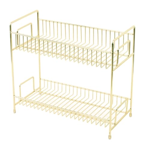 Conutoo製の鉄製スキンケア収納ラックは、ゴールド色の2段式で、多機能に使えるデザインです。化粧品や香水などを浴室やトイレで整理整頓できます。