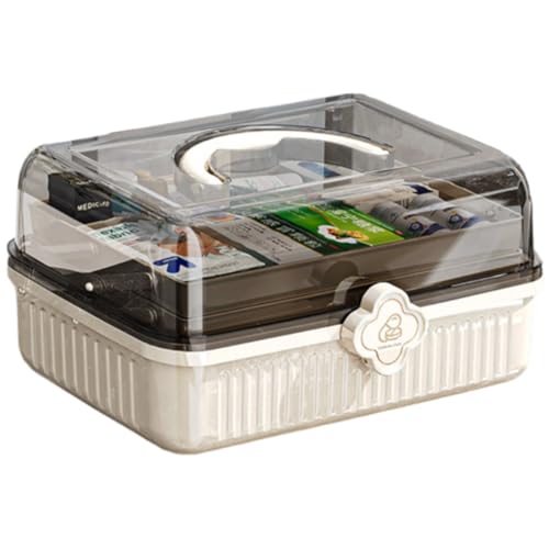 Uranus 救急箱 薬箱 大容量 収納ボックス 3段 折りたたみ式 手提げ 鍵付き 家庭用 医療箱 応急処置 薬ケース 小物収納 工具箱 ジュエリーボックス 旅行用 車載用 災害用 防災グッズ ホワイト おしゃれ (M:長さ30.5*幅20*高さ16.5cm,ホワイト)の高価買取