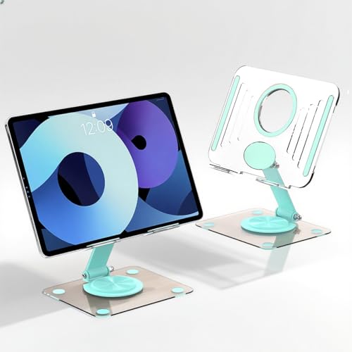360°回転するアクリルタブレットスタンド。折りたたみ可能で、調整自由。S字型デザインでiPad Pro、Air、Miniに対応。デスク用のポータブルスタンド。