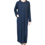 NISHIKIのマタニティパジャマは、長袖ワンピースタイプで前開き、授乳対応。綿混ストレッチ天竺で伸縮性があり、ロング丈で快適。ネグリジェとしても使えるデザイン。カラーはネイビー、サイズは3/L。