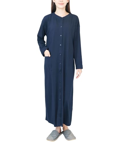 [ON NISHIKI] マタニティ パジャマ 長袖 ワンピース 前開き 授乳対応 綿混 ストレッチ天竺 伸縮性 ロング丈 授乳服 ネグリジェ マタニティウェア (ネイビー:3/L/72739) 高価買取中