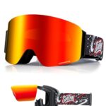 Odolandの跳ね上げ式スキーゴーグルは、OTG眼鏡対応、UV400保護、VLT15%、曇り止め機能を備えています。超広視野で耐衝撃性があり、男性・女性の大人に適したデザインです。