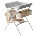 多機能ベビーベッド。折りたたみ式で収納付き、調節可能な高さ。おむつ替え台と授乳ケアに最適。お風呂対応、安全設計でポータブル。洗濯可能なグレー色のベーシックモデル。
