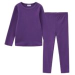 YumeFlairの子供用保温下着セット。キッズパジャマ、可愛くカジュアルで、吸湿速乾。春秋冬に最適な長袖長ズボン。男の子女の子用、パープル150サイズ。[並行輸入品]
