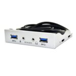 Grannertonのシルバーホワイトフロントパネルは、2つのUSB 3.0ポートとHDオーディオジャック、3.5″フロッピーベイを備え、20ピンコネクタに対応しています。