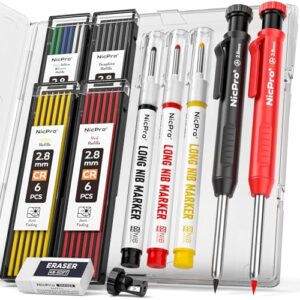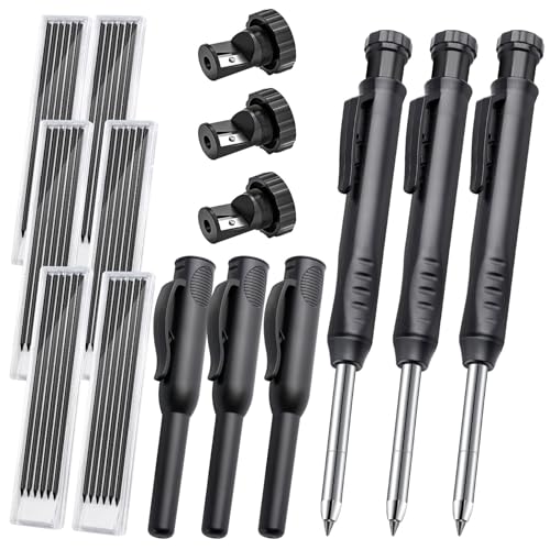 Worldity シャープカーペンター鉛筆は高耐久で、シャープナーが付属。リフィル6箱付きで深穴木工用に最適。建設、大工、建築家のマーキングに便利なブラック色です。