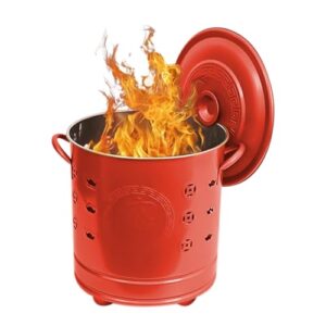 家庭用焼却炉、ドラム缶焼却炉、蓋とハンドル付き 燃焼バケツ 紙、落ち葉、木のゴミを燃やすのに使用されるパターン付き (32cm)