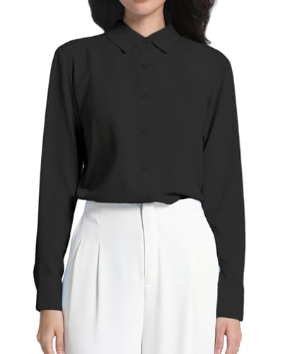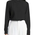 Aiiro Hatobaの長袖ブラウスはS~4Lサイズで、シフォン素材を使用。形態安定でノーアイロン、ゆったりとしたシルエットが魅力。高通気性で通勤やビジネスシーンに最適な一着です。