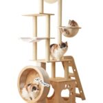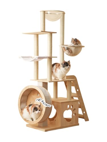 木製スリムキャットタワーは大型猫や多頭飼いに最適です。宇宙船デザインで人気があり、キャットホイールもあるため遊びやすさが向上。省スペースで置きやすい据え置きタイプ。