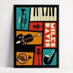 40x50cmのヴィンテージジャズ音楽イラストキャンバスアート。寝室やリビングルームに最適な写真、ポスター、プリント。額無しで手軽に飾れる壁掛けアート。