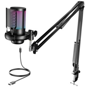 TKGOU USB ゲーミング PC マイク コンデンサーマイクミュートボタン 単一指向性 RGBライティング 音量コントロール プラグ&プレイ パソコン ゲーム実況 ライブ配信 ポットキャスト ストリーミング Skype Discord Zoom Windows/Mac/PS4/PS5対応