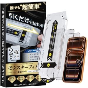 モンスターフィルム iPhone 17 Pro 用 さらさら アンチグレア ガラスフィルム | 2枚セット ガイド枠付き 黒縁あり 全面保護 | 貼りやすい アイフォン 17 プロ 用 保護フィルム B1670