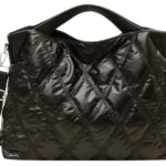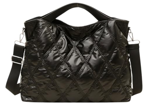 軽量で大容量のキルティングショルダーバッグ。2way仕様でトートや斜めがけスタイルに対応。おしゃれなデザインと内ポケット付きで通勤や通学にも最適です。(ブラック)