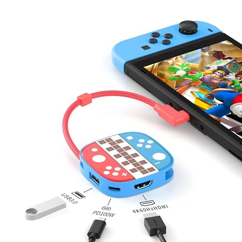 Switch 2用の多機能ドック。HDMI出力で4K@60Hz対応、PD100W急速充電、USB 3.0変換アダプター。軽量で持ち運び便利。音声映像同時転送、吊り下げ可能なデザイン。