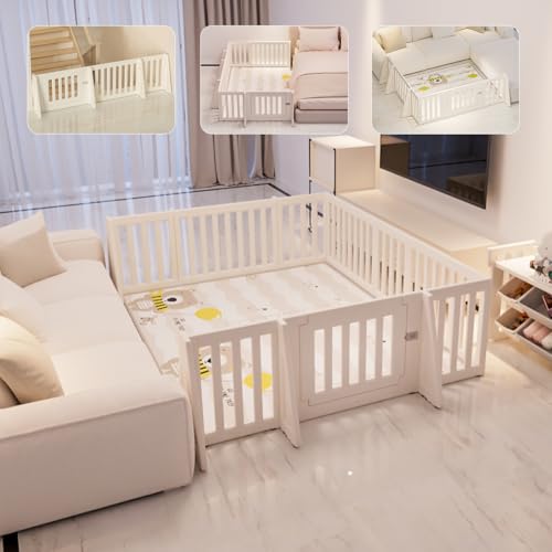 Kennkari ベビーサークル 扉付き ベビーゲート ロングタイプ 自立式 ベビーガード キッズ パーテーション 赤ちゃん L字 コ字 一直線 変形フェンス ドア付き 柵 間仕切り 簡単設置 脱走防止 高さ63cm (ベージュ, 直線長さ551cm)の製品情報