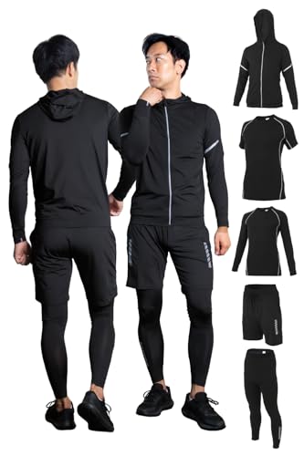 [RUOSIA] ランニングウェア メンズ 上下 5点セット 日本の企業企画 現役加圧トレーナー監修&オリジナル動画付き 涼暖機能 吸水速乾 抗菌防臭 (ホワイト, L)の製品情報