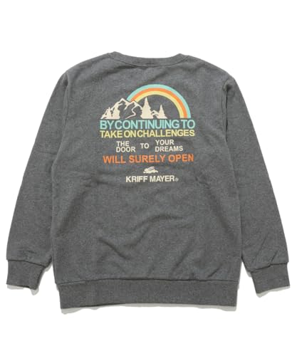 クリフメイヤーのスウェットは、裏起毛で暖かく、シフォンタッチのクルータイプ。虹デザインが可愛らしく、キッズやジュニアに最適。男女兼用で、160サイズのグレー。
