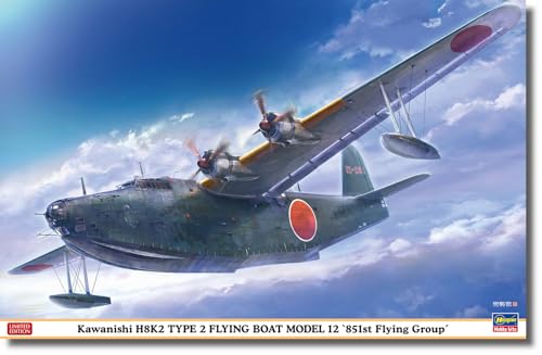 ハセガワ 1/72 日本海軍 川西 H8K2 二式大型飛行艇 12型は、第851航空隊の機体をモデル化したプラモデルです。詳細な外装や内部構造が再現されており、精密なデザインと組み立てやすさが特徴です。