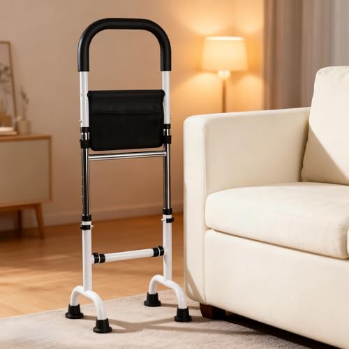 HEINALOUS立ち上がり補助器具は、介護用手すりで室内で使用可能。6段階の高さ調整ができ、転倒防止に役立ちます。玄関や階段、ベッドサイドに最適で、起き上がりをサポート。ポケット付きの置き型タイプで、便利なホワイト色です。