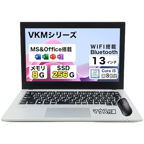 NECノートパソコン VersaPro VKM17は、第8世代Core i5-8350Uを搭載。メモリ8GB、SSD256GB、Windows11 Pro、Office2019、Wi-Fi・Bluetooth内蔵。HDMI出力、マウス付属。