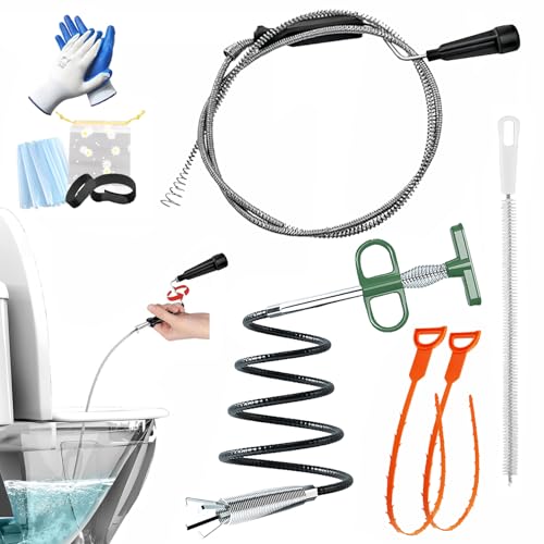 「家庭用・業務用」アップグレード版トイレ詰まり解消ツールセット:2m手回し式回転ワイヤー清掃機、1.6mステンレスクリープクロー、60cm洗浄ブラシ、狼牙式掃除棒2本(50cm)付き。排水管・トイレの詰まり疏通・清掃に多機能で便利なプロ仕様工具。手袋・マスク・収納袋付き (2m業務用疏通ツール6点セット) 高価買取中