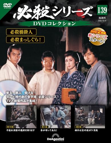 必殺シリーズDVDコレクション第139号は、必殺橋掛人第13話と必殺まっしぐら!第1話~第2話を収録した分冊百科です。DVD付きで、ファン必見の内容となっています。