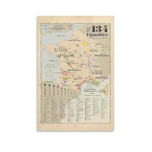 フランスのブドウの木をテーマにしたレトロな地図ポスター。ヨーロッパの都市を描き、部屋にぴったりのキャンバスウォールアート。サイズは16×24インチ(40x60cm)。