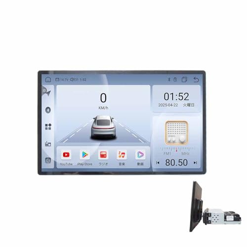 アンドロイド13搭載の1DINカーナビ。11.5インチタッチパネル、RAM4GB、ROM64GB、8コアプロセッサ。WiFi、Bluetooth、USB接続、ラジオ機能。カープレイ、アンドロイドオート、iPhone対応。シムカード対応。
