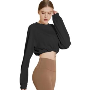 [DAYCLOSET] ヨガウェアトップス レディース 長袖 薄手 ピラティスウェア ラグランスリーブ 吸水性 速乾性 コード調節 yoga169 (L, ブラック)