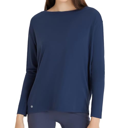 [IRCOLVE] ヨガウェア トップス 長袖tシャツ レディース ピラティス ロングtシャツ 春秋 スポーツ ランニング ジムウェア ラッシュガード 吸湿速乾(紺色,l)
